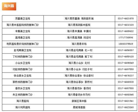 接種地址:滄州市海興縣城海港路