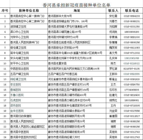 接種地址:廊坊市香河縣五百戶鎮(zhèn)香城村154號