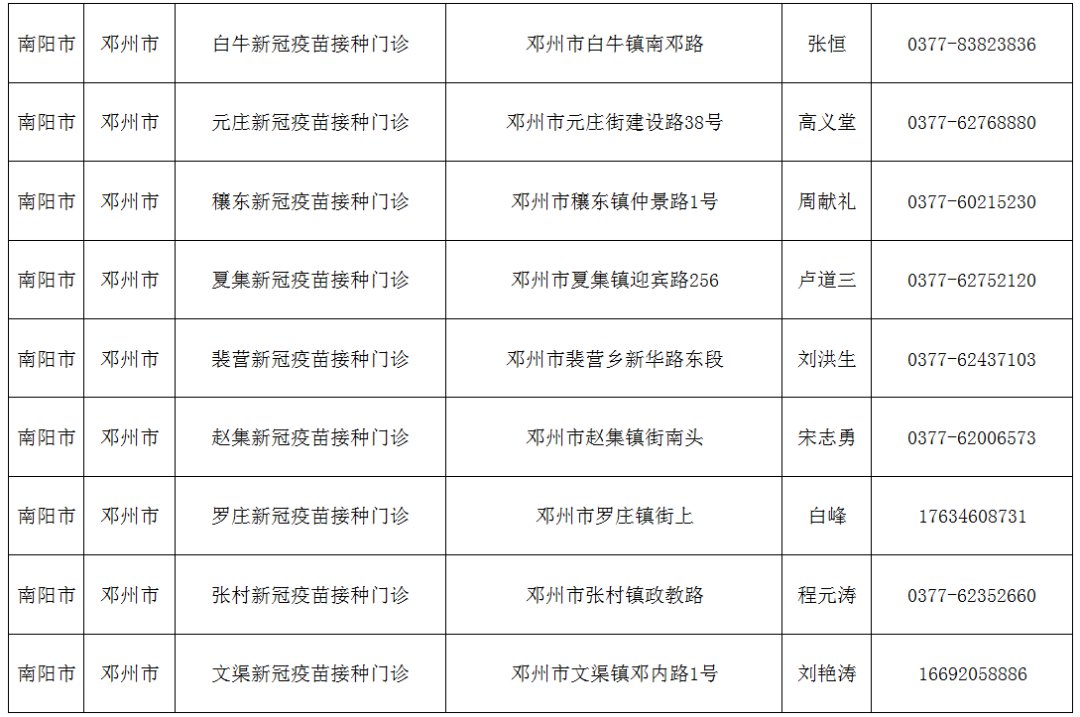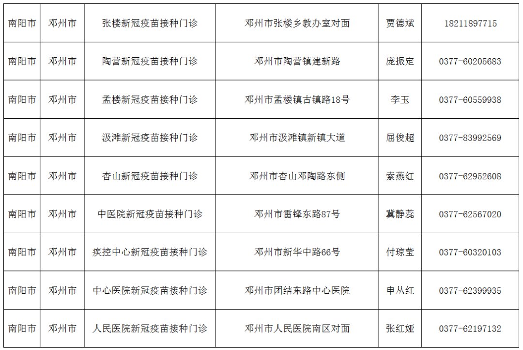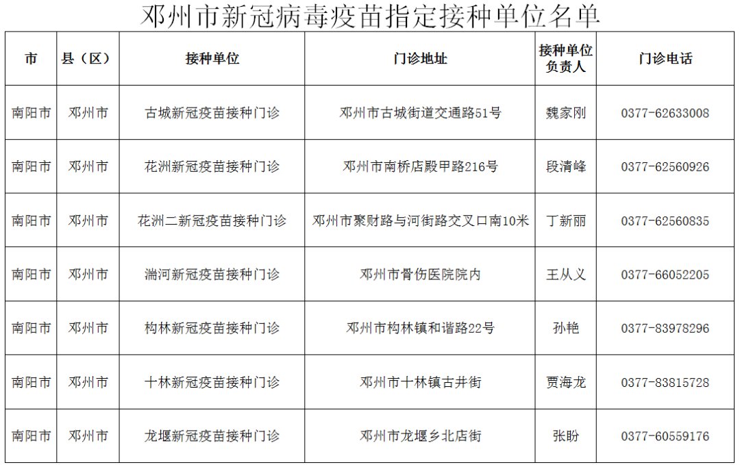 接種地址:鄧州市新華中路婦幼保健院東區(qū),