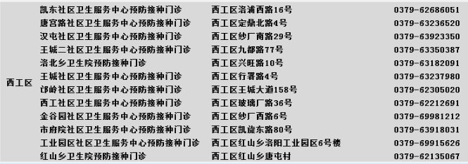 接種地址:洛陽(yáng)市西工區(qū)行署路4號(hào)