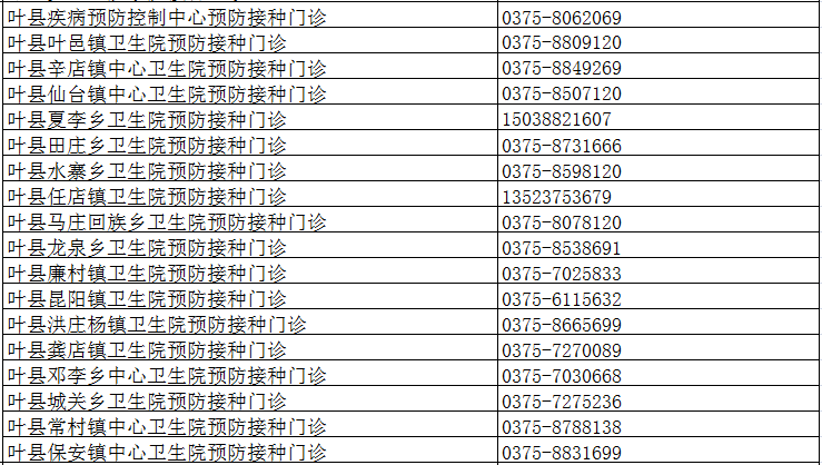 2、葉縣葉邑鎮(zhèn)衛(wèi)生院預防接種門診