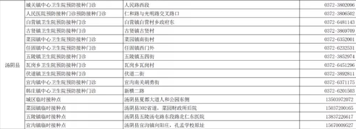 接種地址:安陽(yáng)市湯陰縣人民路西段;
