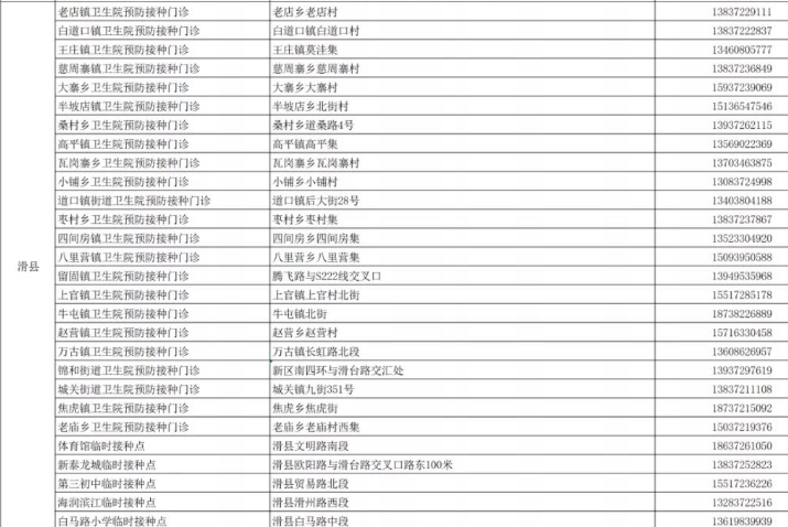 接種地址:安陽市滑縣歐陽路與滑臺(tái)路交叉口路東100米;