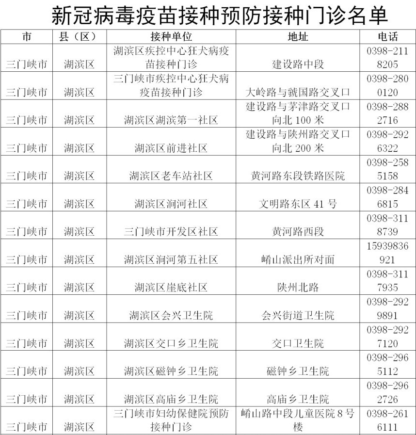 接種地址:三門峽市湖濱區(qū)陜州北路