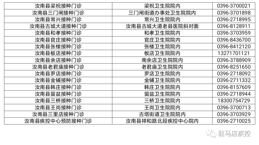 1、駐馬店市汝南縣疾控中心預防接種門診