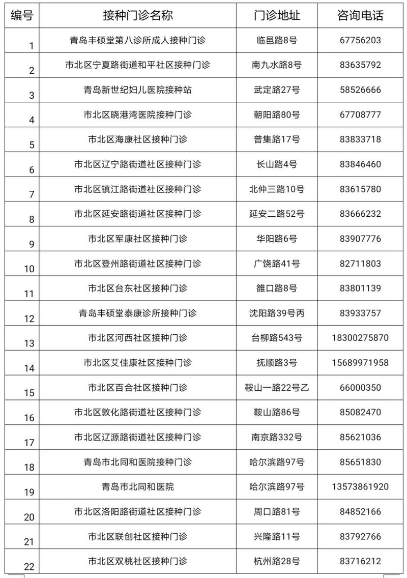 接種地址:青島市市北區(qū)洛陽路25號甲