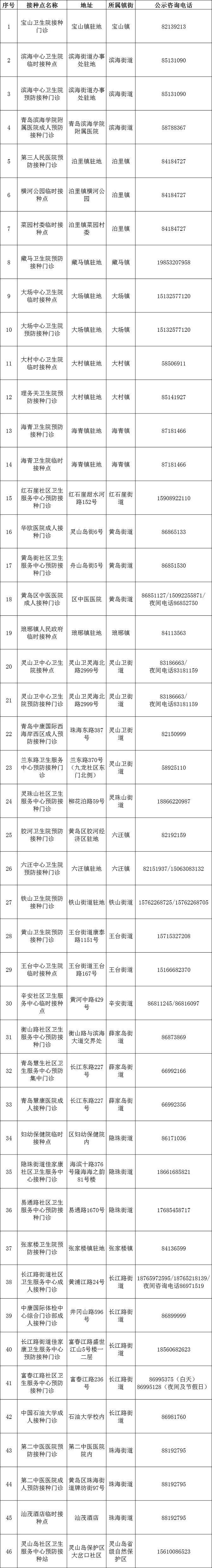 接種地址:青島市西海岸新區(qū)海青鎮(zhèn)駐地