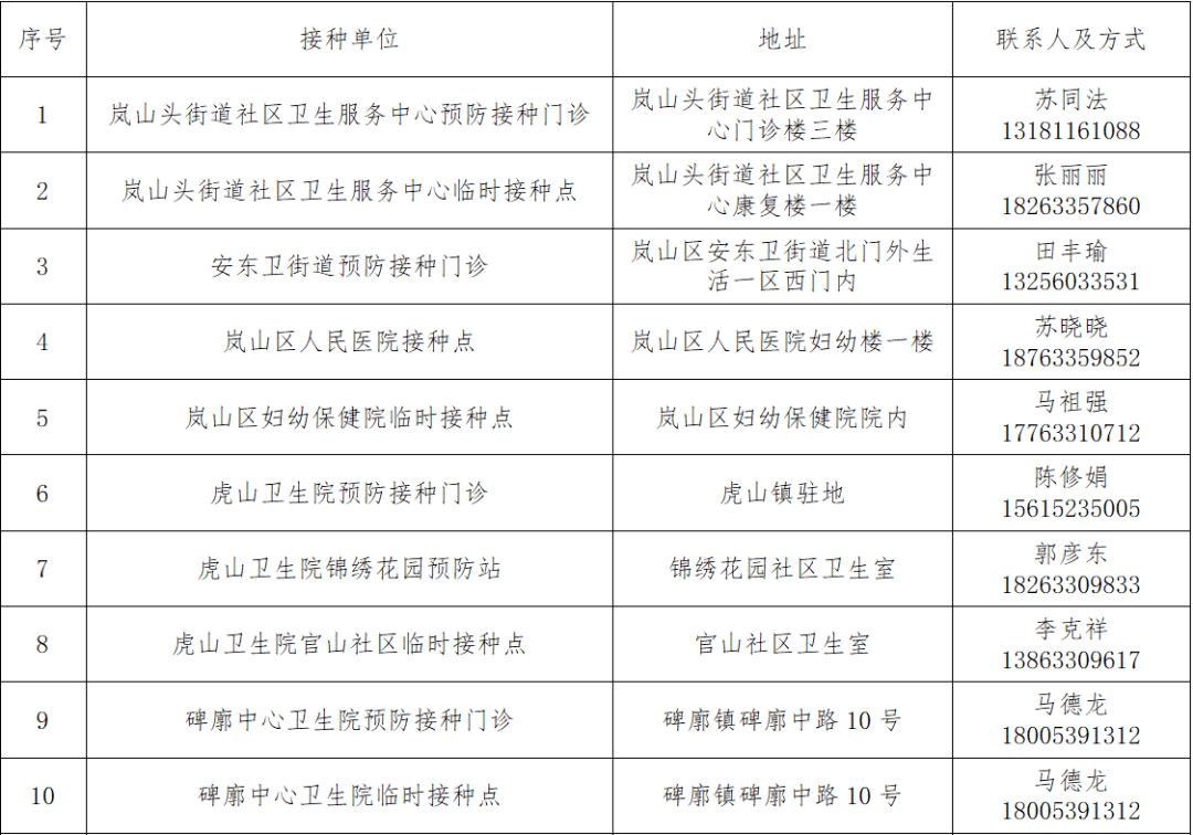 即日起,日照市嵐山區(qū)內(nèi)18歲以上居民(含60歲以上)不論戶籍,身體狀況符合接種要求的均需免費接種新冠病毒疫苗,請您與所在單位或社區(qū)聯(lián)系疫苗接種相關(guān)事宜。零散居民、流動人口也可攜帶身份證,就近自行前往接種點接種,接種點會根據(jù)疫苗供應(yīng)情況、日接種能力、排隊順序等發(fā)放接種序號。嵐山區(qū)居民預(yù)約接種新冠病毒疫苗單位名單、地址、接種時間和預(yù)約電話等相關(guān)信息看這里↓↓↓
