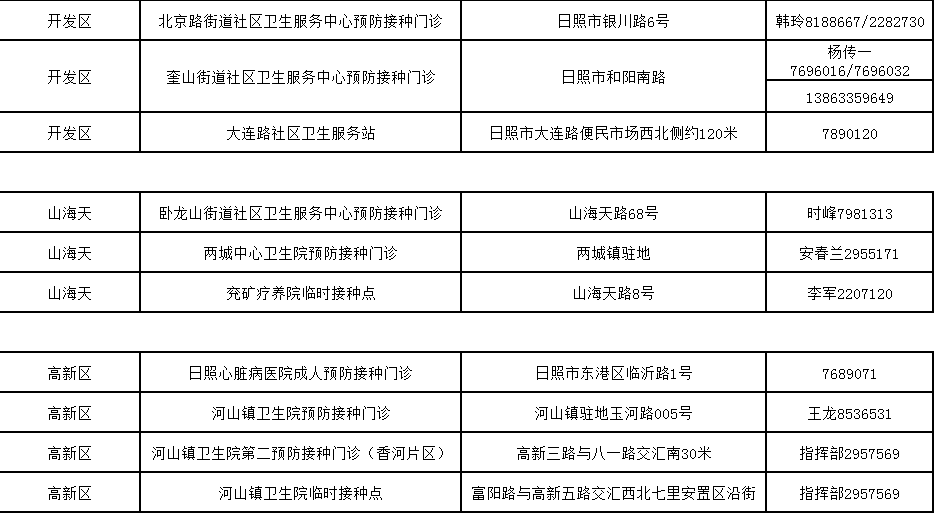 1、日照高新區(qū)香河片區(qū)預(yù)防接種門診