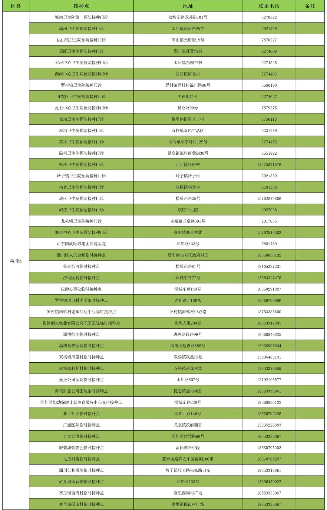 接種地址:淄博市淄川區(qū)大鐘街71號