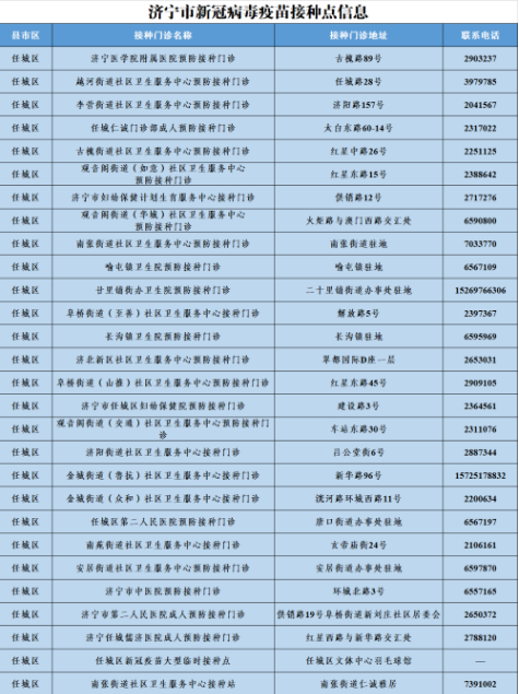 接種地點(diǎn):濟(jì)寧市任城區(qū)安居街道辦事處駐地