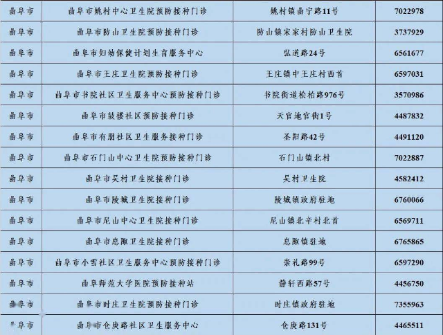 接種地點(diǎn):山東省曲阜市魯城街道鼓樓大街北首9號(hào);