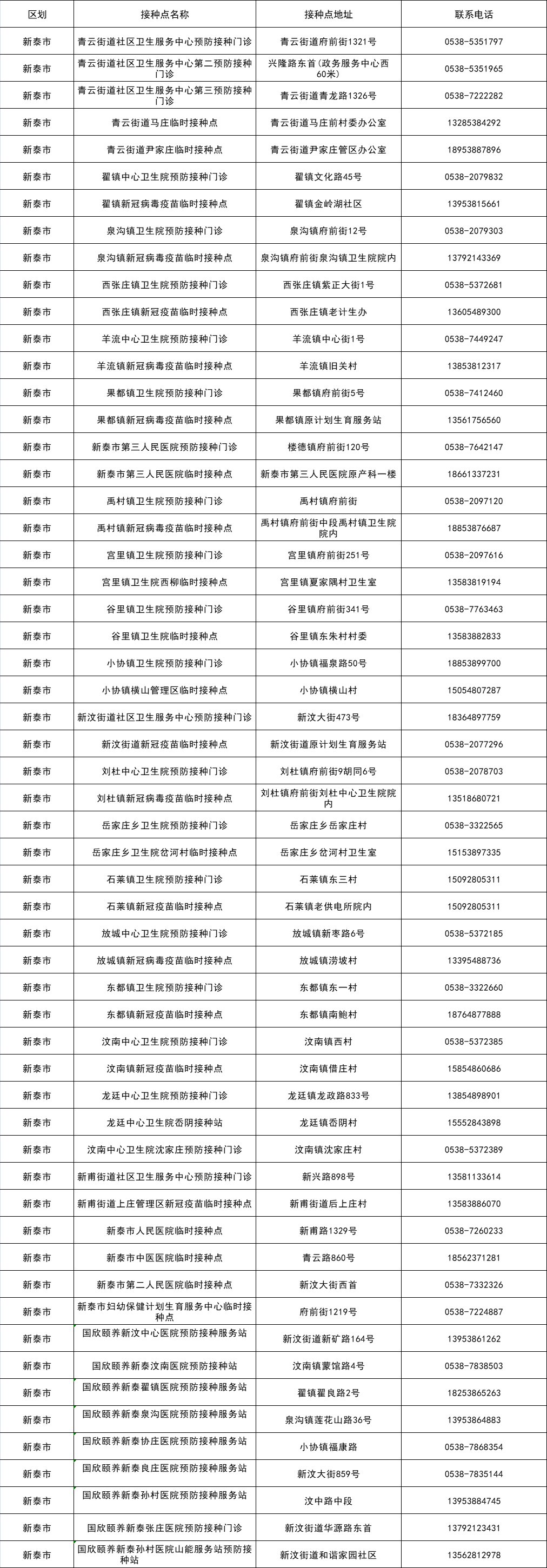 接種地點(diǎn):山東省新泰市青云街道府前街1321號(hào)