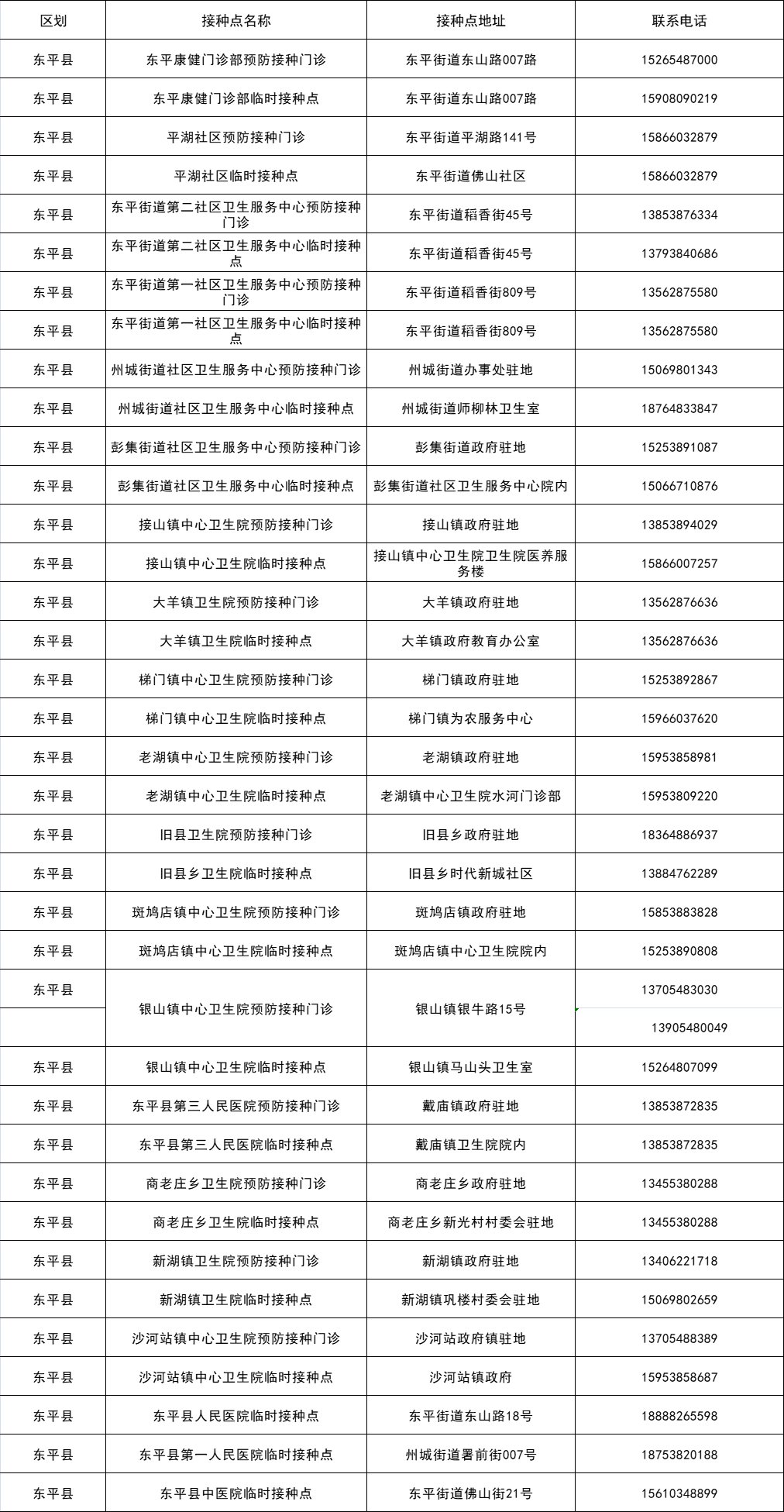 接種地點(diǎn):泰安市東平縣東平街道東山路18號