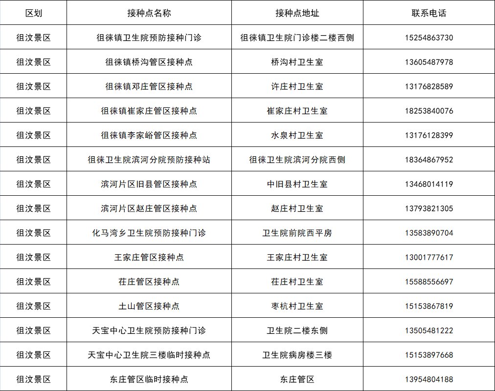 接種地點(diǎn):泰安市徂汶景區(qū)徂徠衛(wèi)生院濱河分院西側(cè)