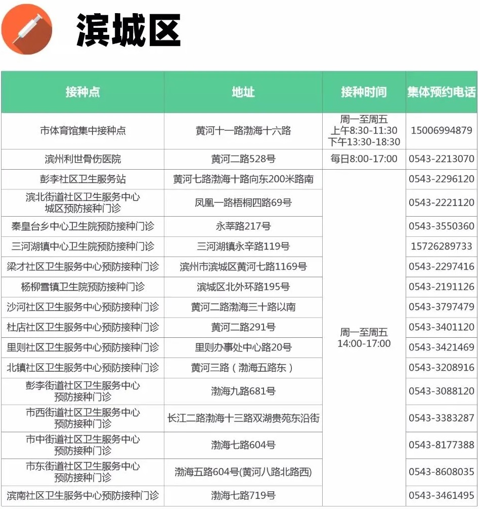 接種地點(diǎn):濱州市濱城區(qū)渤海八路 928 號