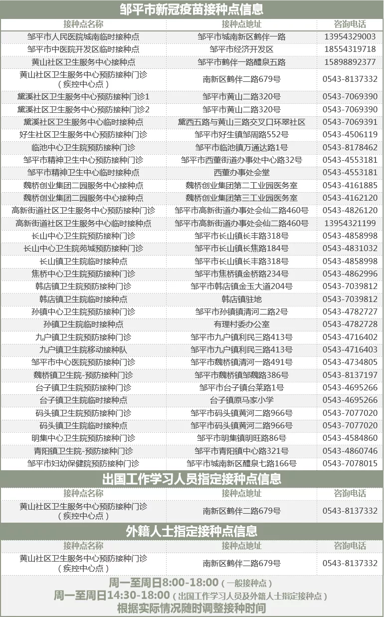 接種地點(diǎn):濱州市鄒城市韓店鎮(zhèn)鄒韓路 204 號(hào)