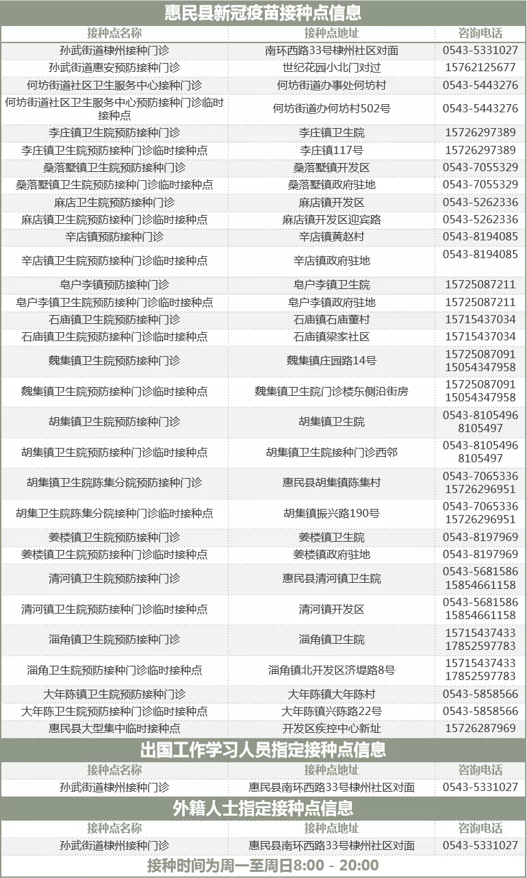 接種地點:濱州市惠民縣城東門大街 16 號