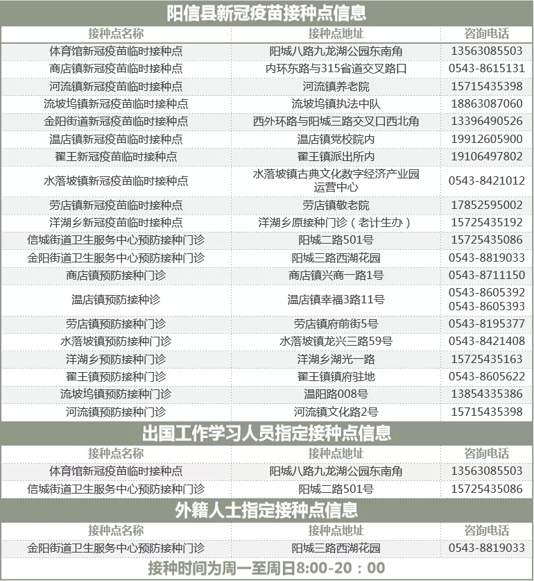 接種地點(diǎn):濱州市陽信縣陽城三路 675 號