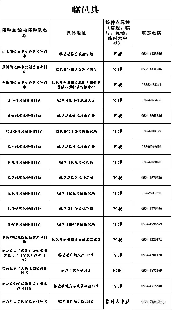 接種地點(diǎn):德州市臨邑縣廣場(chǎng)大街105號(hào)