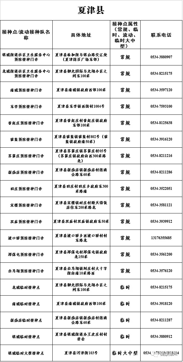 接種地址:德州市夏津縣雙廟鎮(zhèn)