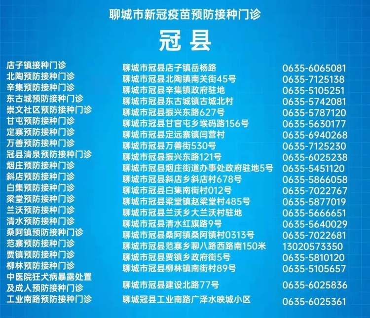 接種地點:聊城市冠縣賈鎮(zhèn)鄉(xiāng)政府街5號