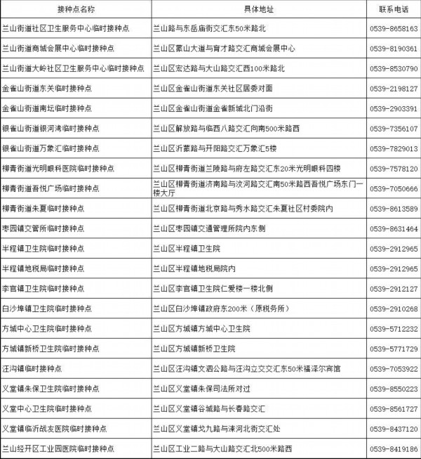 1、臨沂市蘭山區(qū)蘭山街道社區(qū)衛(wèi)生服務(wù)中心臨時(shí)接種點(diǎn)