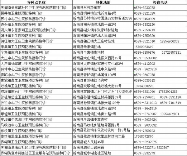 接種地點(diǎn):臨沂市沂南縣城人民路45號(hào)