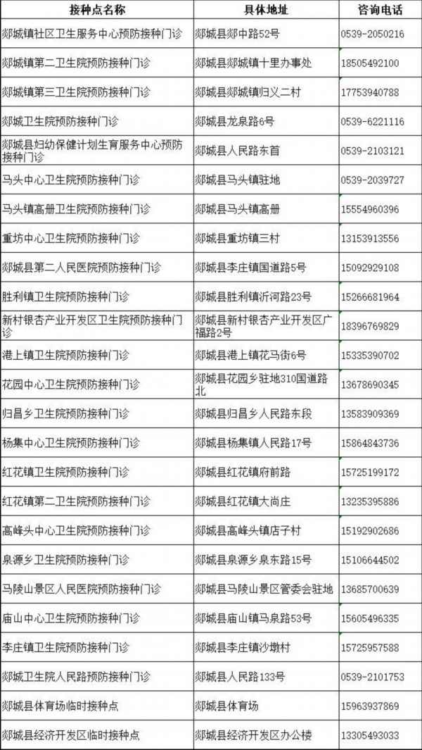 接種地點(diǎn):臨沂市郯城縣郯中路52號(hào);