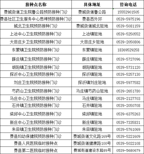 接種地址:臨沂市費縣費城街道建設東路89號