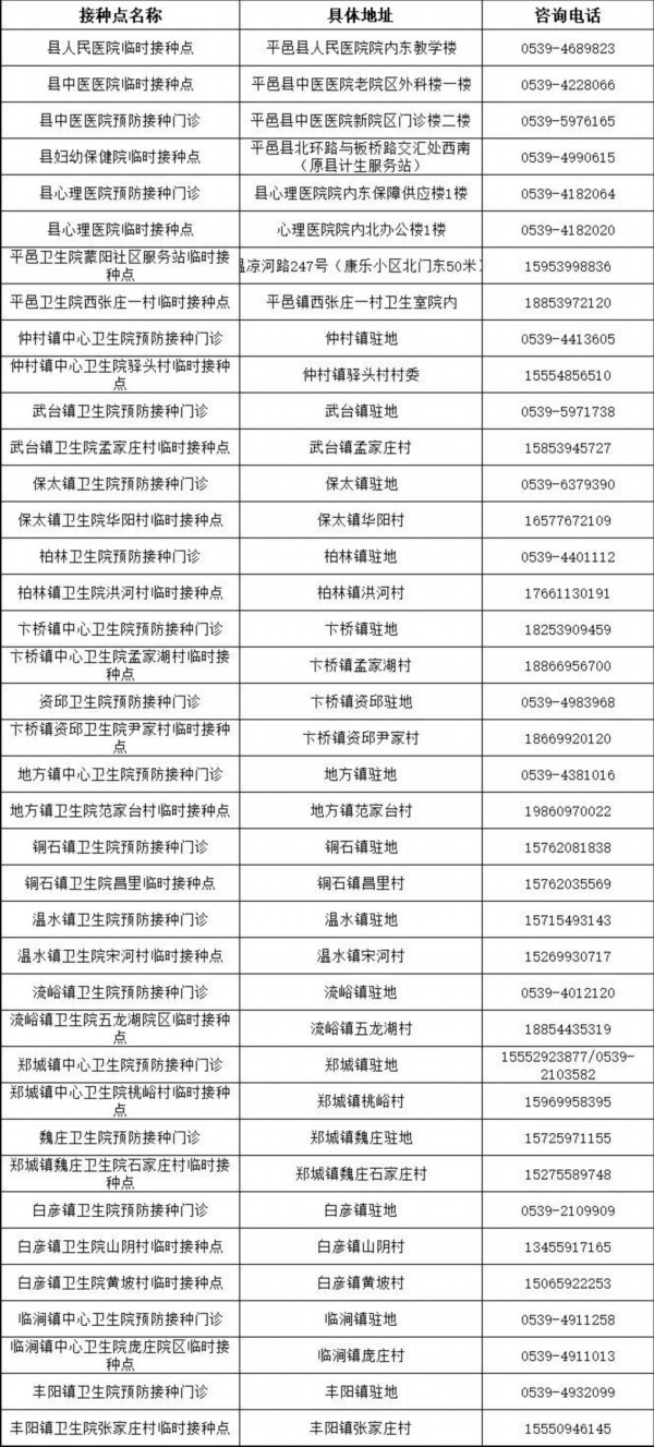 接種地點:臨沂市平邑縣北環(huán)路與板橋路交匯處西南(原縣計生服務站)