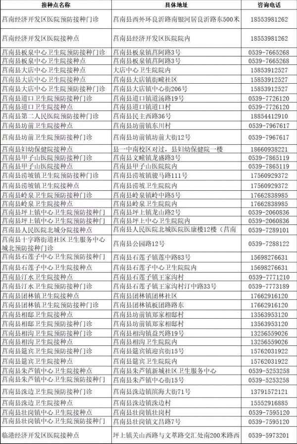 接種地點:臨沂市莒南縣一中南校區(qū)對過,縣婦幼保健院一樓