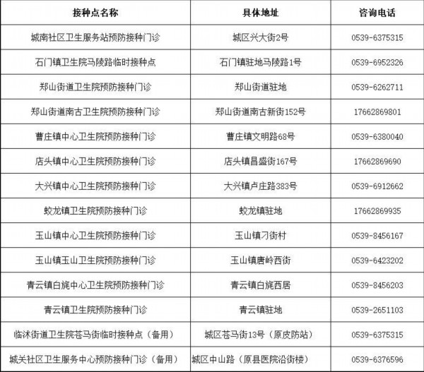 接種地點(diǎn):臨沂市臨沭縣城區(qū)中山路(原縣醫(yī)院沿街樓)