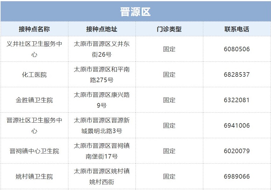 接種地點:太原市晉源區(qū)晉源新城景明北路3號