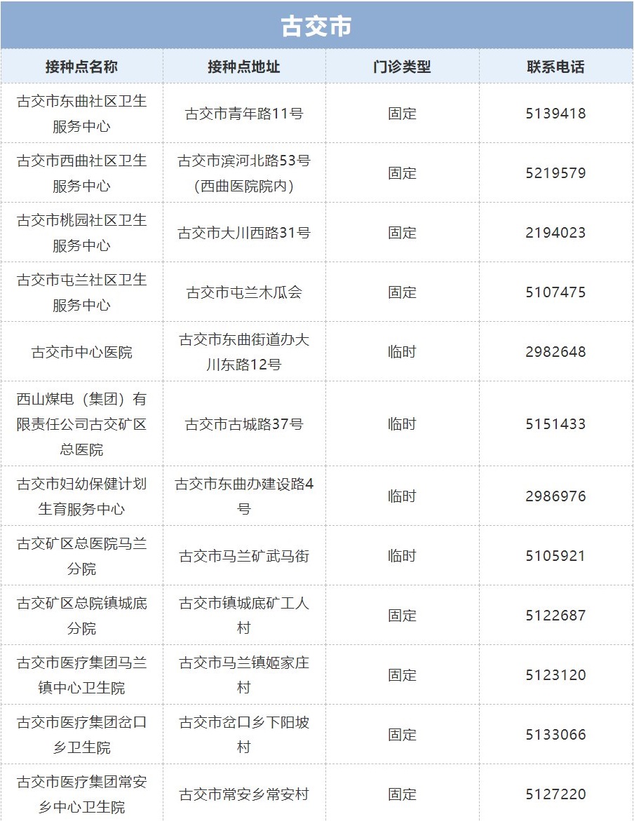 接種地點(diǎn):山西省古交市古城路37號(hào)臨時(shí)