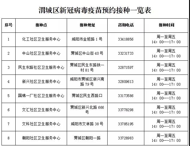 接種地點(diǎn):陜西省咸陽市渭城區(qū)新興北路666號