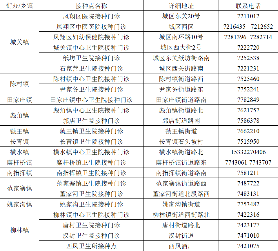寶雞市鳳翔區(qū)各接種單位聯(lián)系電話