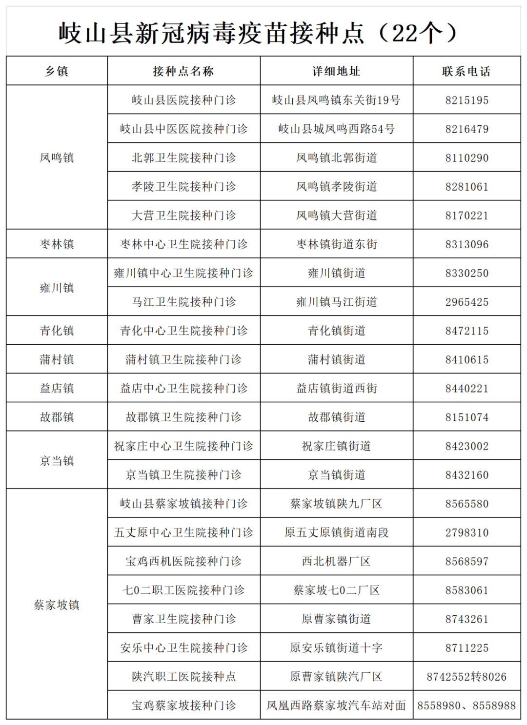 22、寶雞蔡家坡接種門診