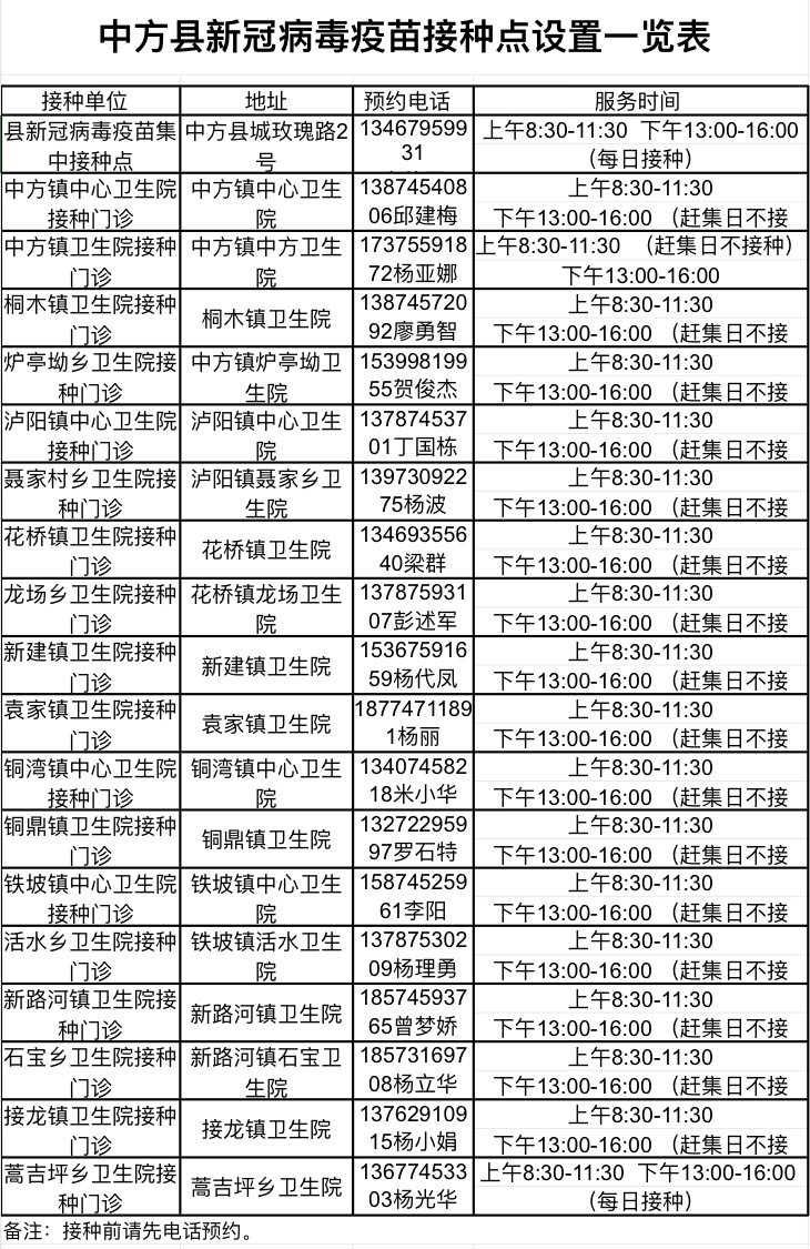 1、中方縣新冠病毒疫苗集中接種點(diǎn):13467959931