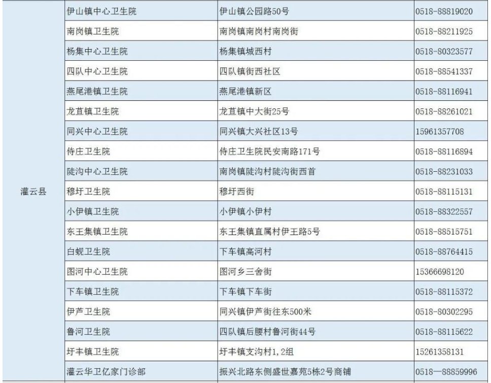 連云港市灌云縣新冠病毒疫苗接種點信息