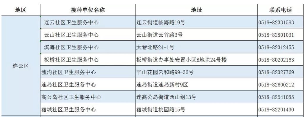 連云港市連云區(qū)新冠病毒疫苗接種點(diǎn)信息