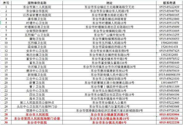 接種地點:江蘇省鹽城市東臺市東臺鎮(zhèn)金海東路19號