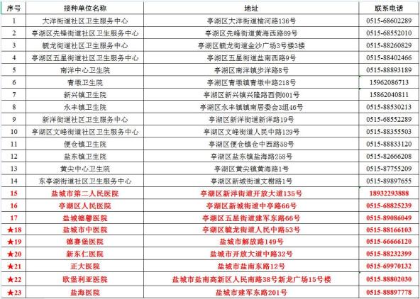 接種地點(diǎn):江蘇省鹽城市亭湖新區(qū)中亭路66號(hào)