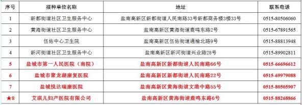 鹽城高新區(qū)新冠病毒疫苗接種點信息