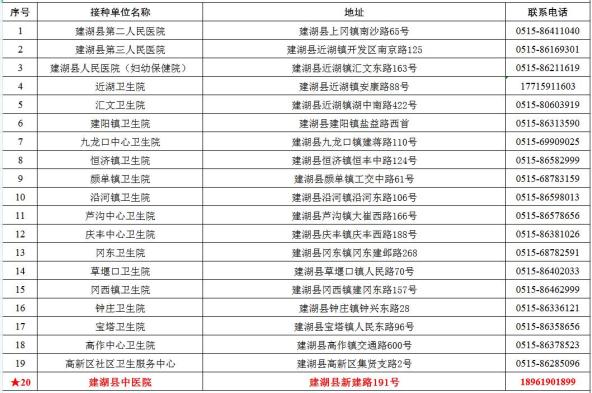 鹽城市建湖縣新冠病毒疫苗接種點信息