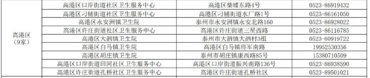 泰州市高港區(qū)新冠病毒疫苗接種點(diǎn)信息