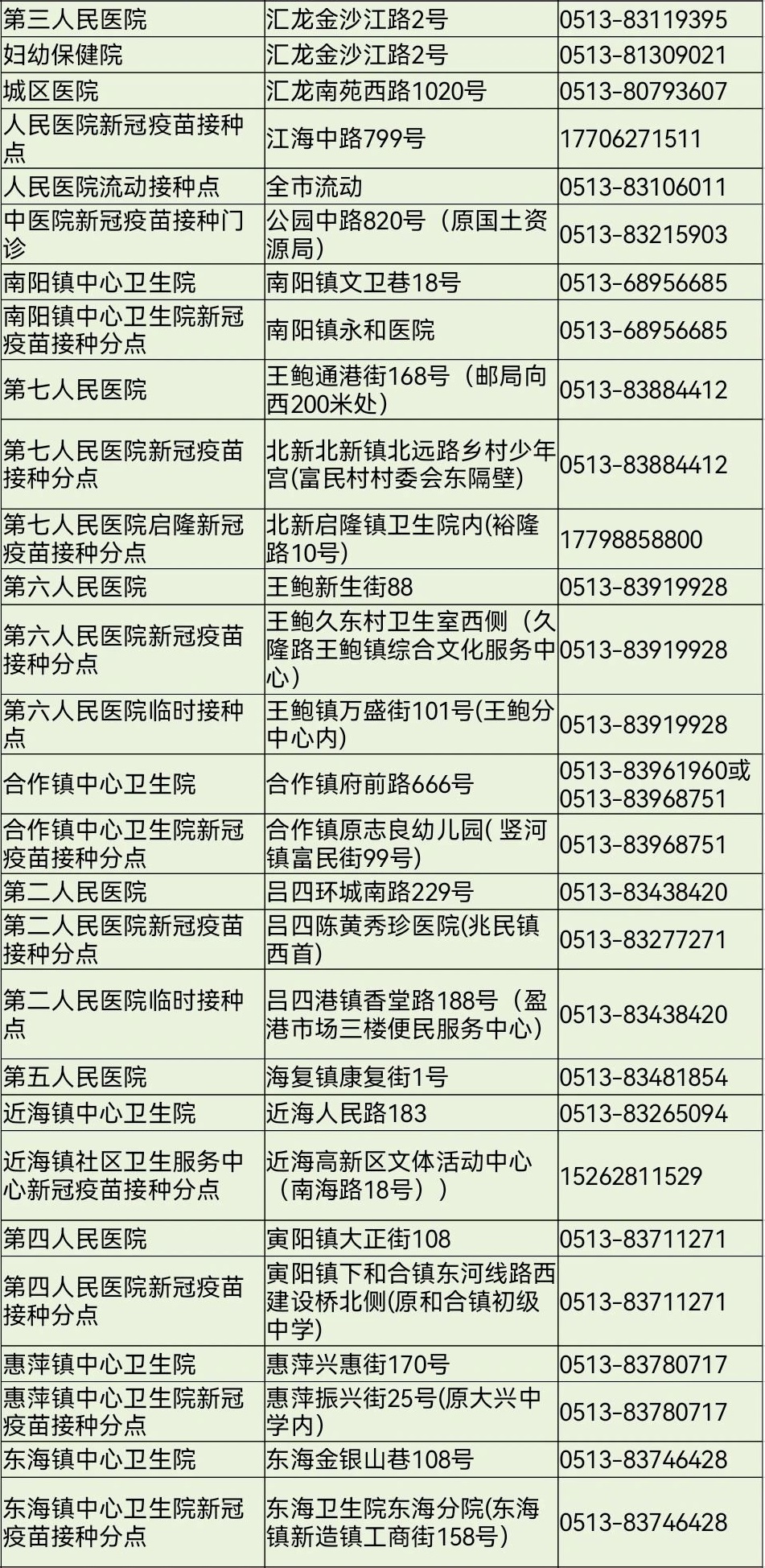 接種地址:江蘇省啟東市合作鎮(zhèn)府前路666號