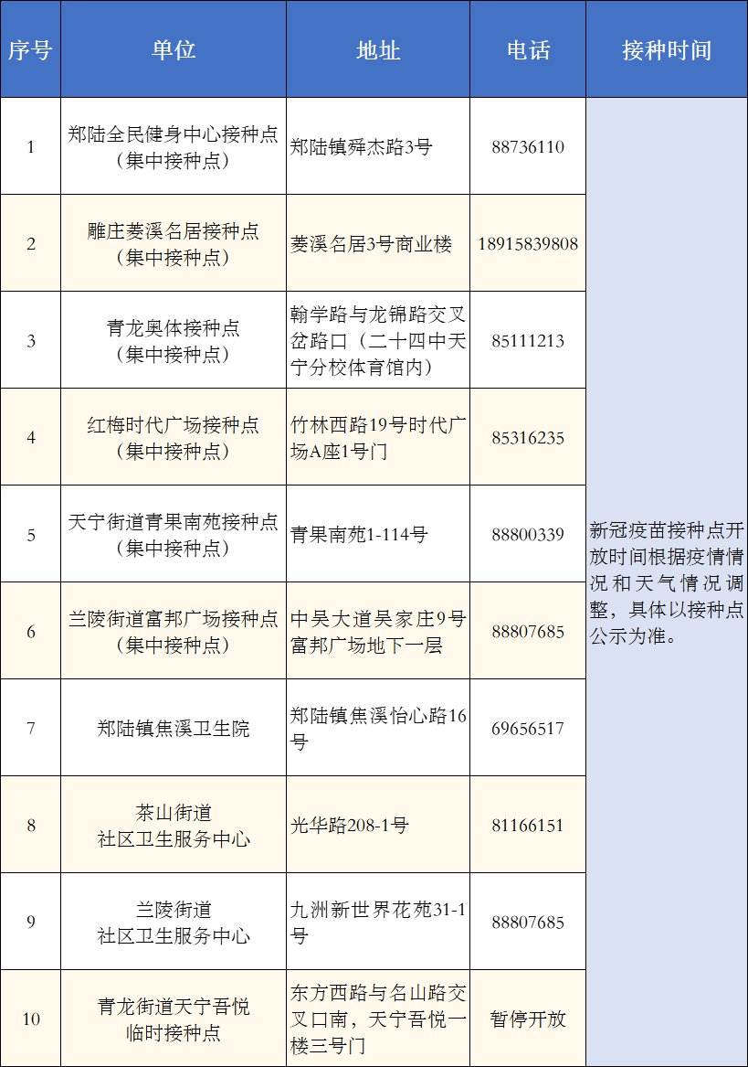 常州市新北區(qū)天寧區(qū)新冠病毒疫苗接種點(diǎn)信息