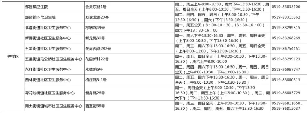 常州市鐘樓區(qū)新冠病毒疫苗接種點(diǎn)信息