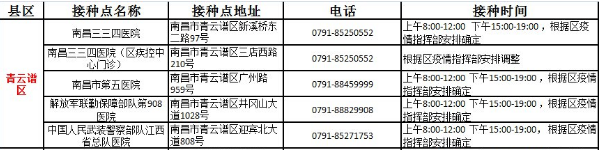 接種地點(diǎn):江西省南昌市青云譜區(qū)廣州路959號(hào)
